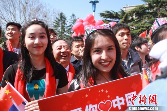 少数民族学生穿着民族服饰参加活动。 杜佳 摄