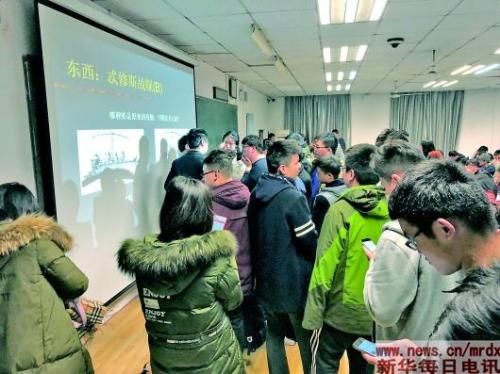 ▲苏德超的课程受到学生追捧。下课后,苏德超淹没在前来讨论问题的学生中。