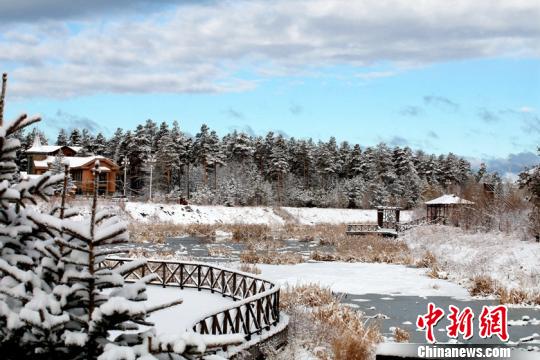 中新网漠河4月16日电(王景阳 姜辉)受一股冷空气影响,16日凌晨,位于中国最北端的黑龙江省大兴安岭漠河市迎来了一场春雪,雪后的神州北极宛如童话世界,展现了别样的北国之春。