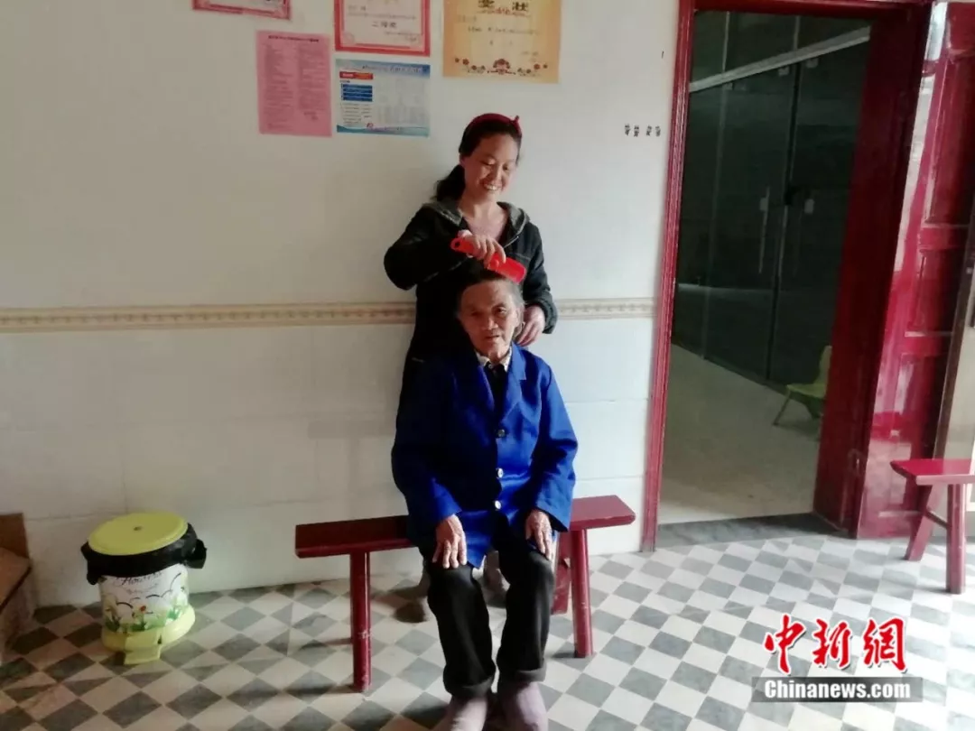余相梅每天早上都会给赖正琼梳头发。受访者供图