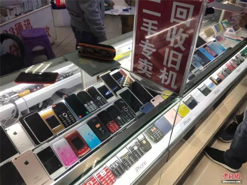 大利嘉城柜台前的2G古董机。彭莉芳 摄
