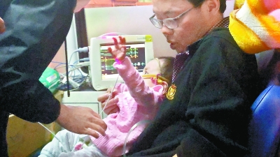 西站直梯门前,列车乘务长刘女士小心翼翼地将溜溜送到孩子父亲手上,出了站,溜溜进了救护车。车辆发动前,王哲医生再次给溜溜进行了一次身体检查,以确认孩子的各项指标。王医生告诉记者,半途中,溜溜出现过一次咳喘,当时给孩子做了一次雾化,情况好转了。目前来看,溜溜的各种先天疾病当中,支气管肺发育不良、房间隔缺损等症状威胁是比较大的,这也是孩子此次来京,要优先解决的问题。昨晚8点43分,救护车顺利抵达八一儿童医院,溜溜被医护人员抱进了PICU病房。