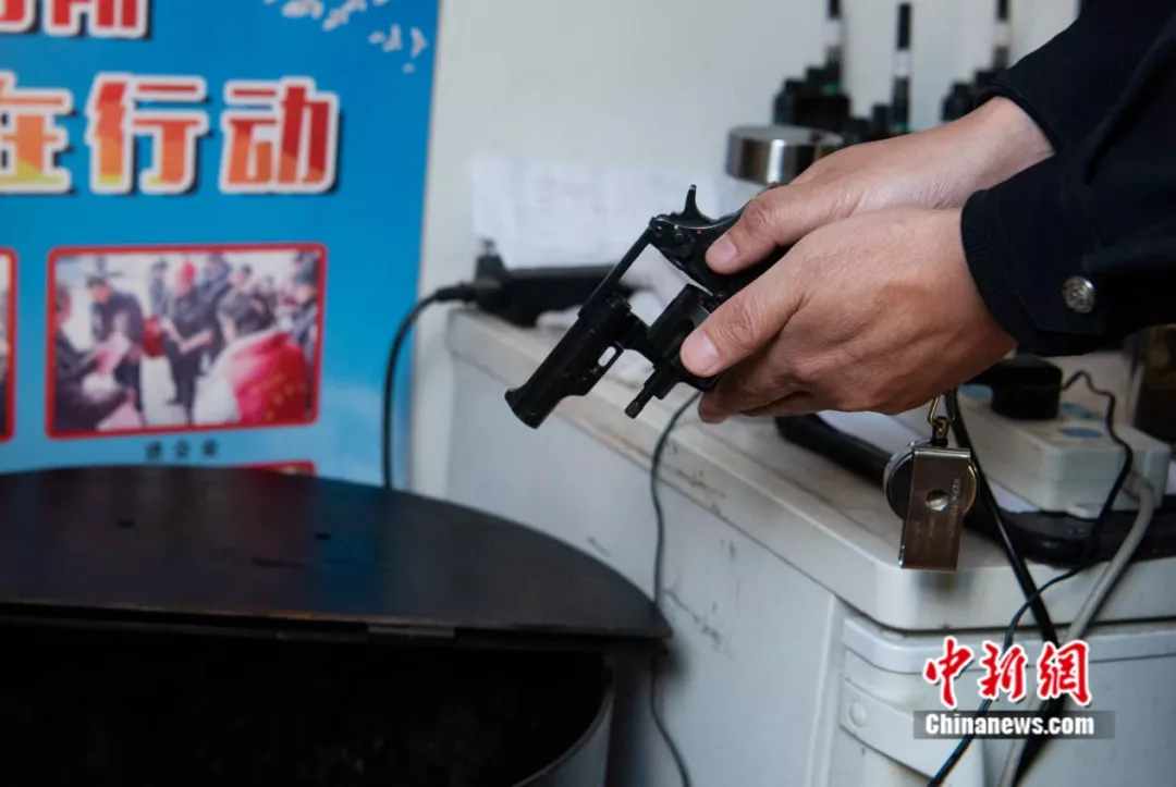 图为时至交接班,警长正在验枪。 徐永杰 摄