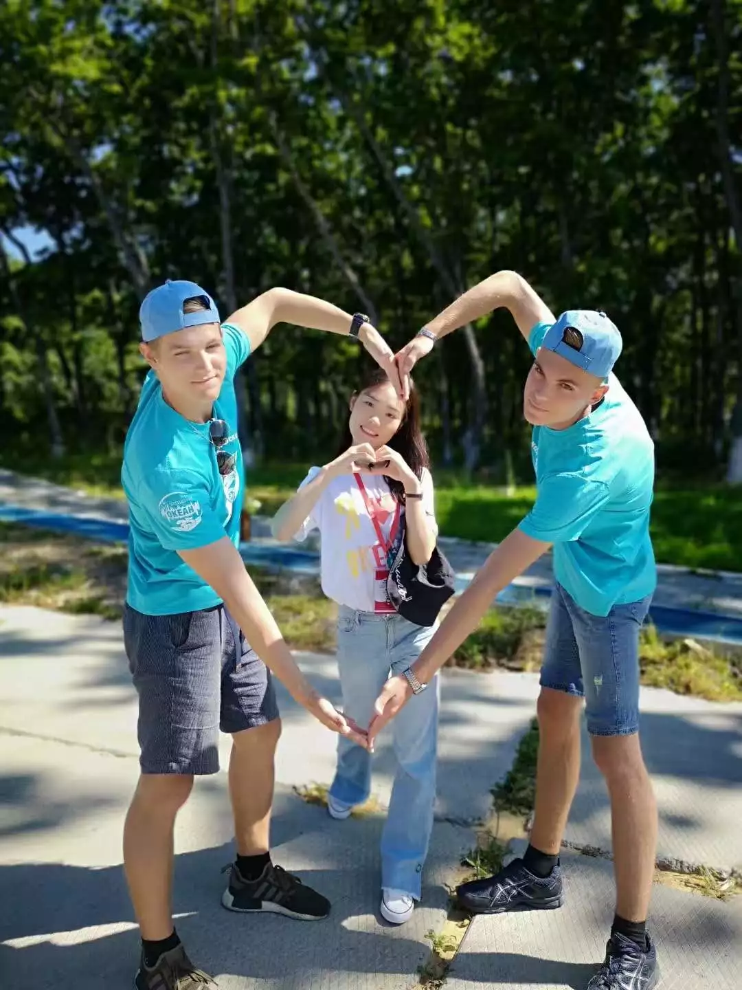 蔡文晴与俄罗斯同学的合照。受访者供图