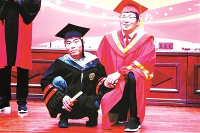 李创业告诉北青报记者,上台领毕业证时还发生了一个小插曲,由于他太激动有点紧张,按照流程,校长发完证书要合影,但是他完全忘记了,直接转头走开了,台上三位老师喊他才反应过来。有同学录到了台上的这一幕,他发到微博还配了一段搞笑的音乐,“很喜感地毕业了”。