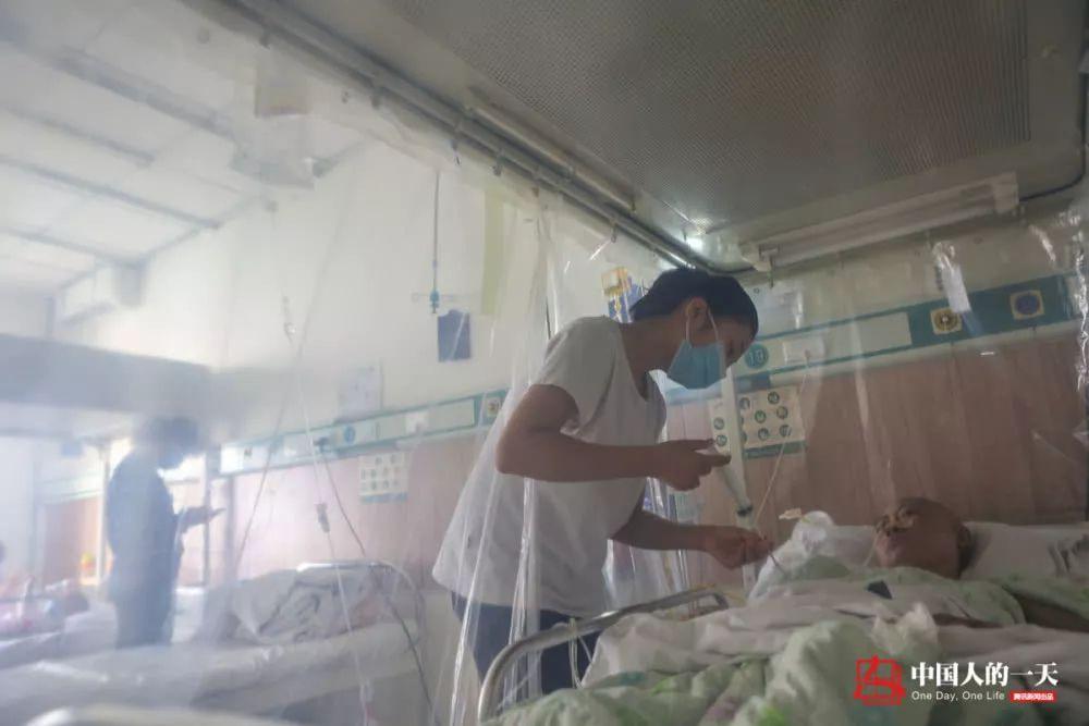 几乎同一时间,在石家庄平安医院的病房里,赵思琦正用鼻饲管给母亲喂食奶粉,接着她又给母亲擦拭身体,一会又给母亲喂水、端屎倒尿,每一件事她都做得十分熟练。