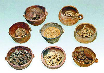 洋海墓地出土的众多盛满东西的器物。新疆文物考古研究所供图