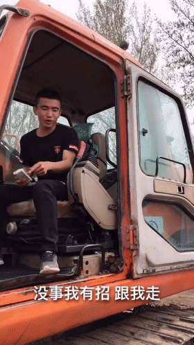 三根线绳控制操纵杆开挖掘机启动手机。这段视频成为目前为止“辽挖老胖”的视频中最具创意的一个