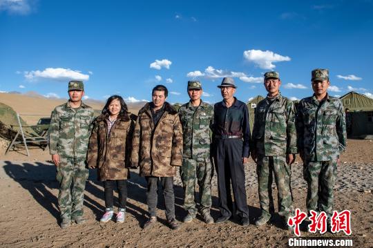 图为西藏大学段教授(右三)赶赴高原驻训地对官兵表示感谢,并与两位施救官兵朱江(左一)、李新波(右一)合影留念。 江辉华 摄