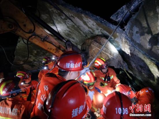 截至6月18日凌晨2时,四川省消防救援总队已调派宜宾、成都、自贡、泸州等地10个支队及总队全勤指挥部、总队战勤保障大队共116车、526人、4犬赶赴震中开展救援。图为宜宾长宁县双河镇葡萄村八组救援现场。文/中新社记者 刘忠俊 四川消防供图