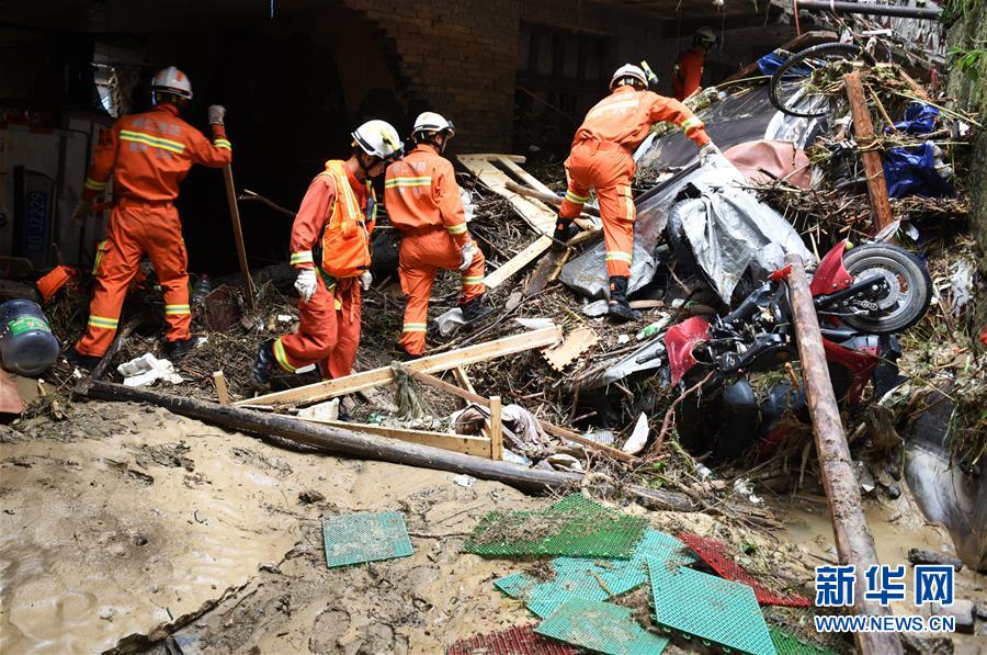 6月23日,在贵州省沿河土家族自治县县城,消防人员在受灾现场进行搜寻。新华社记者 杨文斌 摄