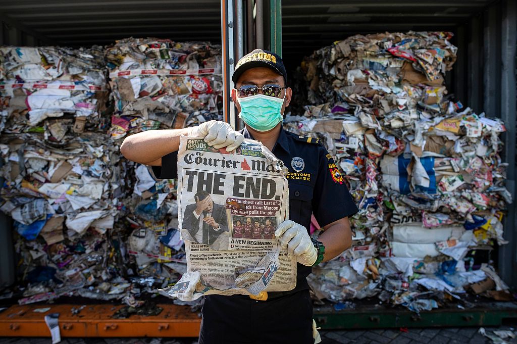 7月9日,印尼泗水,海关官员在检查来自澳大利亚的进口垃圾。印尼7月9日表示,将把超过210吨的垃圾退回至澳大利亚。