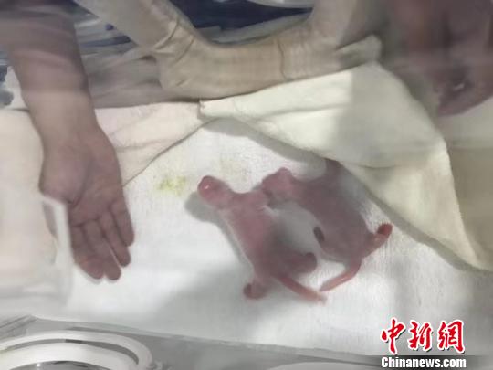 大熊猫“珠珠”生下龙凤胎。陕西省林业局供图