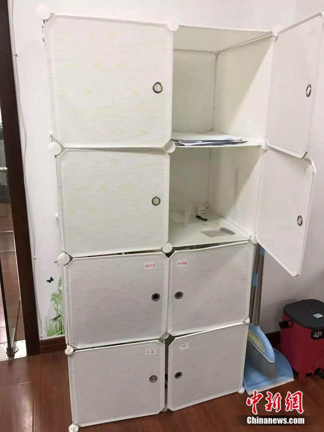 周春办公室内用于回收纸张、饮料品、有害垃圾等的分类橱柜。王子涛摄