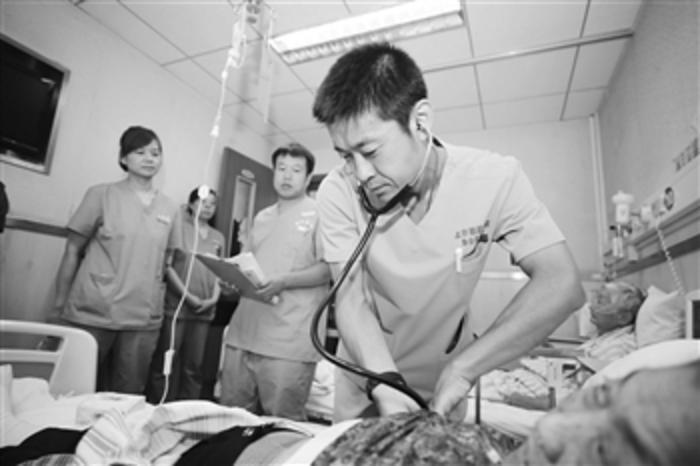 近年来,受人口老龄化、有心肺等基础疾病、脏器功能不全患者增加等因素影响,部分存活患者在ICU直接脱机变得困难、迁延,往往需要长期滞留ICU。为了解决大量呼吸机以来患者长期滞留ICU占用床位,而一些危重症收不进医院的难题,近日,北京朝阳医院紧密医联体内呼吸机依赖患者康复中心成立,为呼吸机依赖患者提供综合、细致、多学科、以撤机为核心的专业照护,对患者全方面如呼吸、肌力、吞咽、言语、心理等多功能障碍进行对点整合治疗,减少或最终摒弃对器官支持技术的依赖。图为北京朝阳医院急诊科副主任医师王烁在六里屯社区卫生服务中心急诊病房查房。