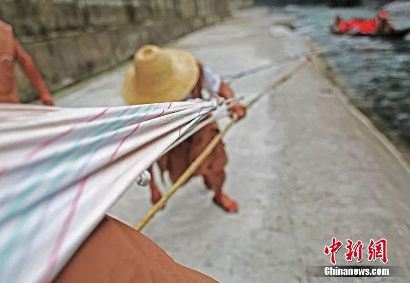 纤夫以纤绳帮人拉船为生 李风 摄