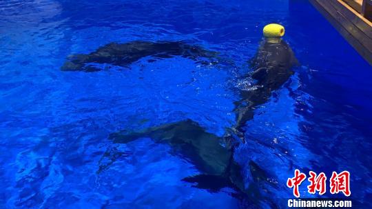 当日,中新网记者在海豚馆内看到,6头已脱离隔离检疫期的海豚被饲养在两处备用池内,每头都食欲旺盛,游动欢快,没有任何身体不适的表现,当有人前往池边,它们会迅速的游过来,并跃动身体。