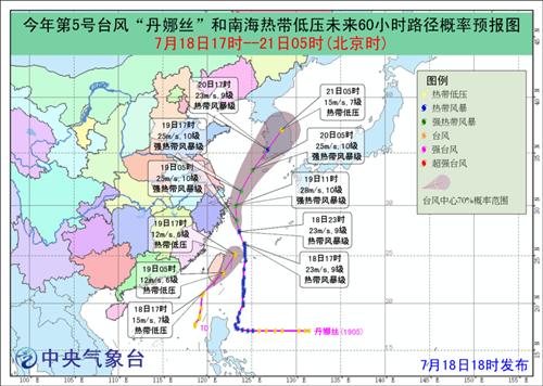 台风“丹娜丝”和南海热带低压路径概率预报图