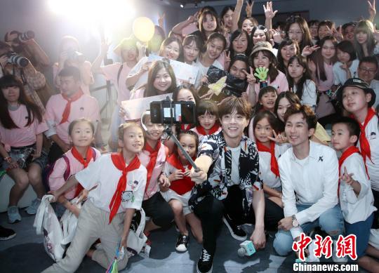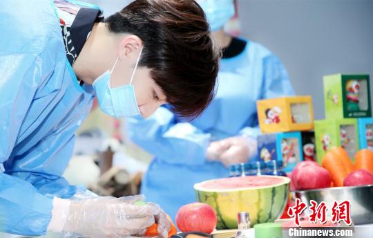陈立农和学生们一起为大熊猫“成实”制作食物。