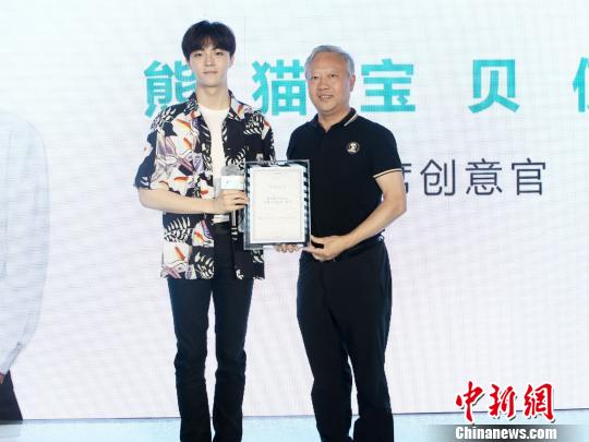 成都熊猫基地为陈立农颁发“熊猫宝贝使者”称号。供图