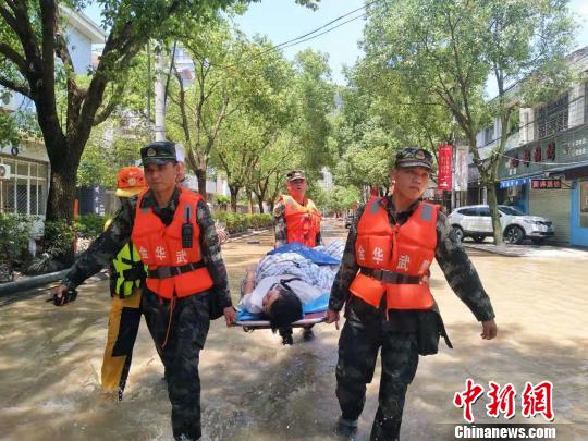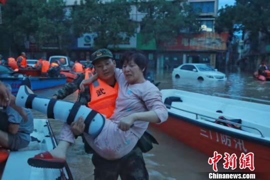 武警官兵转移受困群众 余宁磊 摄
