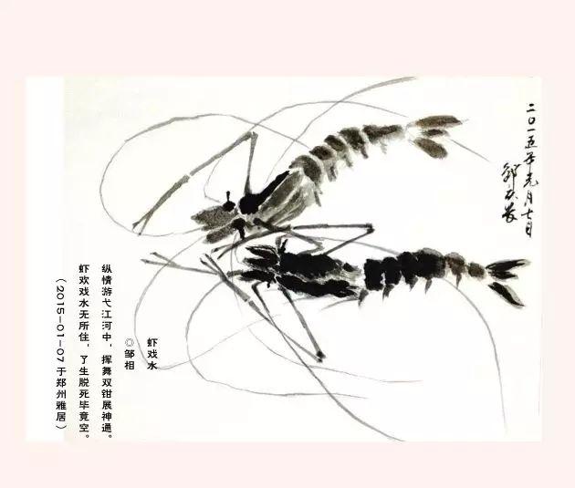 ▲作品《虾戏水》 邹庆长画虾,惟妙惟肖