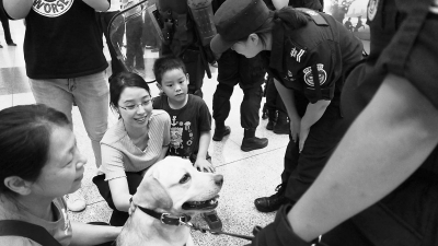 本报讯(记者张蕾 实习生李高昕)昨天,首都国际机场3号航站楼内8只警犬吸引了不少旅客驻足拍照。拉布拉多、史宾格、比利时猎犬……它们都是“反恐走进航站楼”主题宣传活动的主角之一。