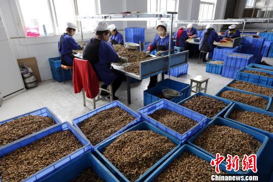 图为甘肃省陇南市成县的民众在加工核桃增收。(资料图) 冉创昌 摄