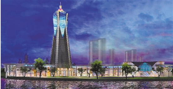 最底下设计为“地”的裙楼部分,采用三种蓝光组成的LED投光灯照亮裙楼的顶部,与远处的运河水遥相呼应,光色设置明暗变化如同祥和之气缓缓流动。