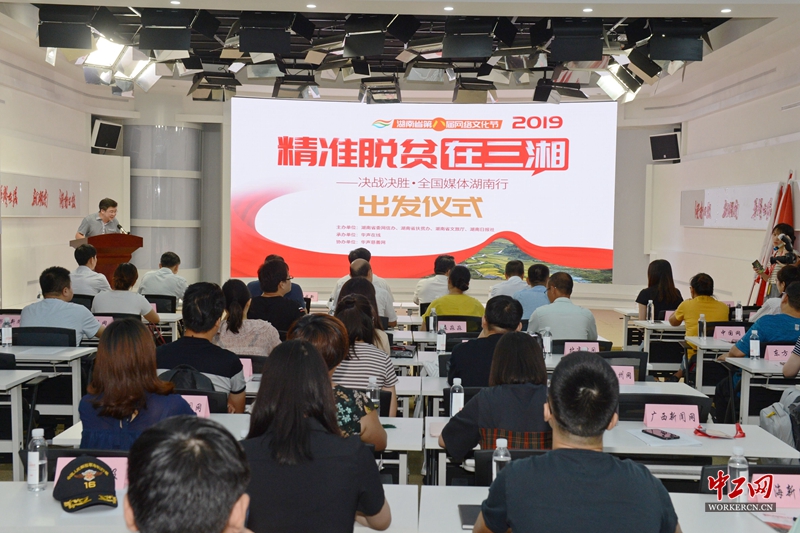 中工网讯(记者 高爽)9月22日下午,湖南省第八届网络文化节之2019“精准脱贫在三湘”——决战决胜·全国媒体湖南行在长沙新湖南大厦正式启动。在接下来的一周时间内,这个由网络名人、全国主流媒体记者组成的70人媒体团,将走进岳阳市平江县、长沙市浏阳市、娄底市双峰县、邵阳市邵阳县、怀化市芷江县,深入扶贫一线,探访扶贫举措,记录扶贫故事,总结扶贫经验,近距离感受这场伟大战役。