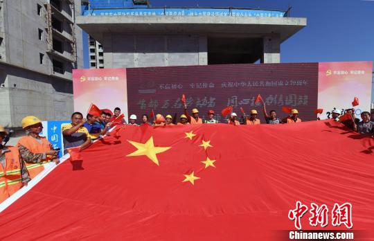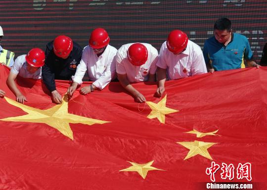 中新网北京9月24日电(钟欣) 9月24日,由北京市总工会主办,劳动午报社、中建一局二公司承办的“把微笑带回家 为最美劳动者点赞”大型公益活动之“首都万名劳动者 同心接力绣国旗”呈献仪式在中建一局二公司北京城市副中心职工周转房项目工地举行。