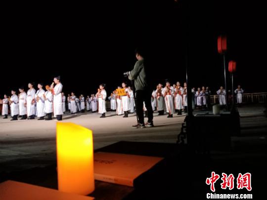 子时,闻星语,夜指长空话星辰。数十名小学生衣着古装,在灯光的映照下,与秋天的夜空及闪烁的星星,凝视对话。