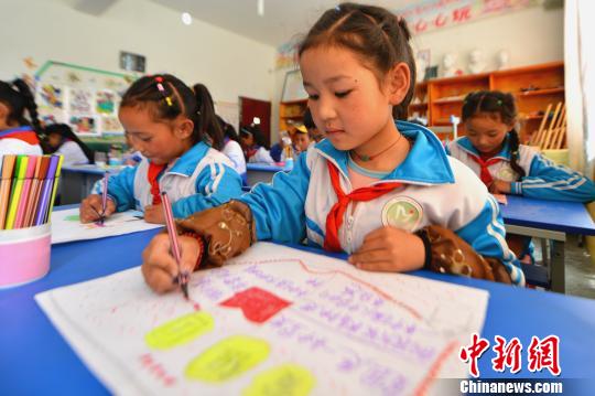 9月22日,西藏拉萨尼木县一小学学生在上美术课。 江飞波 摄
