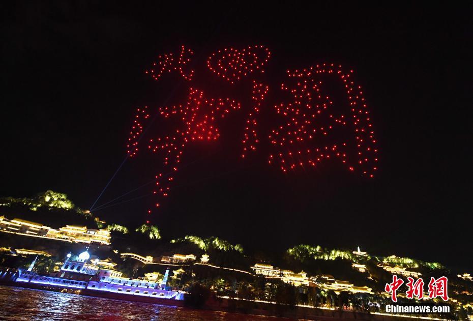 兰州黄河之滨500架无人机拼起“我爱中国”