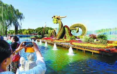 北海公园 “龙腾盛世”主题花坛。本报记者 程功摄