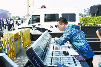 张京说:“整个广场及长安街沿线大概安装近400个话筒,它们会通过局部调音台,将声音信号汇集到主扩声机房处理,再由主扩声机房传播到功放机房,最后再传播到现场观众耳中。”