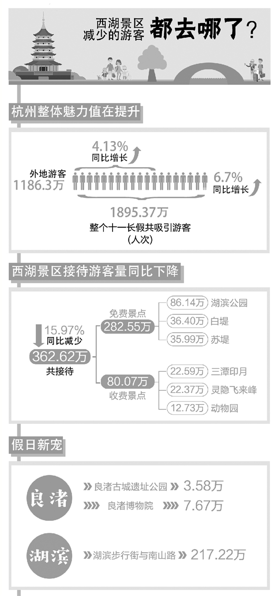 来杭游客量总数在增加,但西湖景区的游客在减少,减少的游客都去了哪里呢?