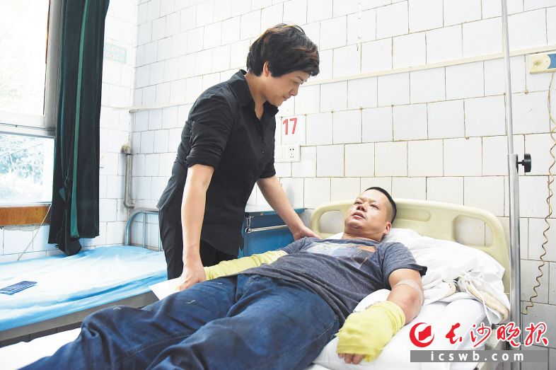 为了救人、灭火,蒋江林身上多处被烧伤。长沙晚报全媒体记者 刘琦 摄
