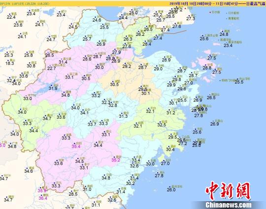 在十一国庆假期期间,浙江多地就已出现连续高温天气。10月9日起,随着一波短暂冷空气的结束,浙江各地气温迅速回升。截至11日15时45分,浙西南地区气温较高,浙江丽水松阳最高温35.4℃,丽水青田最高温35.2℃,皆突破35℃“高温红线”。