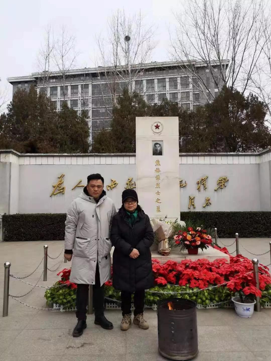 焦守云和儿子余音在焦裕禄的墓碑前 焦守云提供