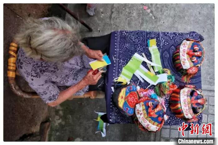 图为:俞荷妹传承狮子帽制作技艺 椒江供图