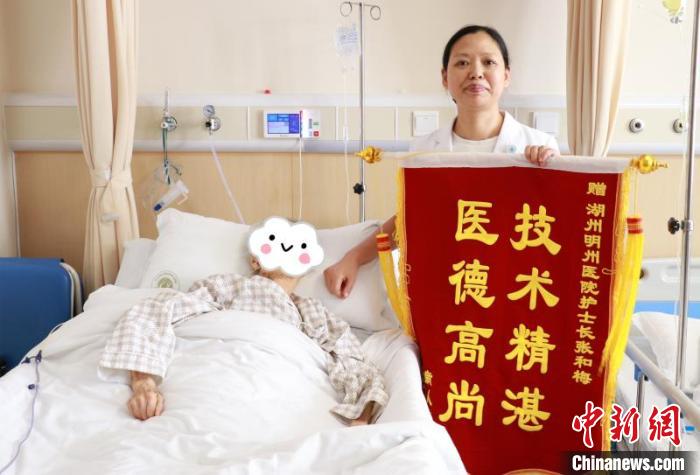 张和梅收到病人赠送的锦旗。浙北明州医院提供
