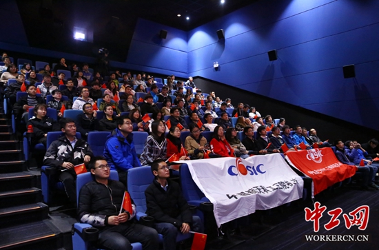 11月15日,中国飞航技术研究院组织130余名职工赴长阳万达影院集体观看新闻纪录影片《此时此刻·2019大阅兵》。(通讯员封晓东 刘湘威 中工网记者徐新星)