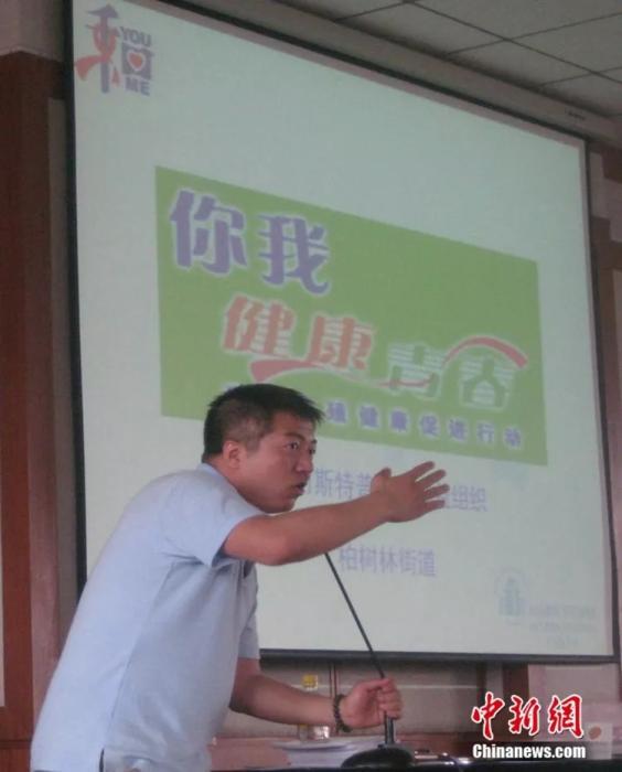 2008年,坚春天在给中学生进行性教育课程。受访者供图