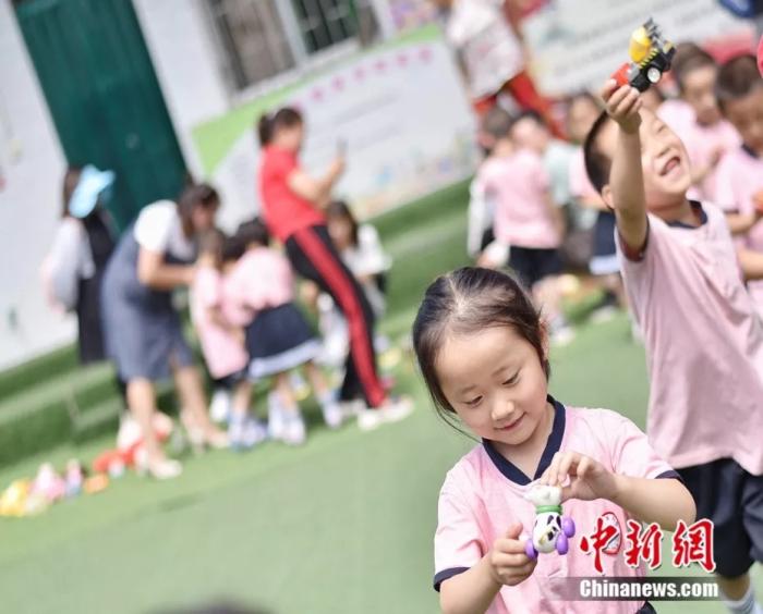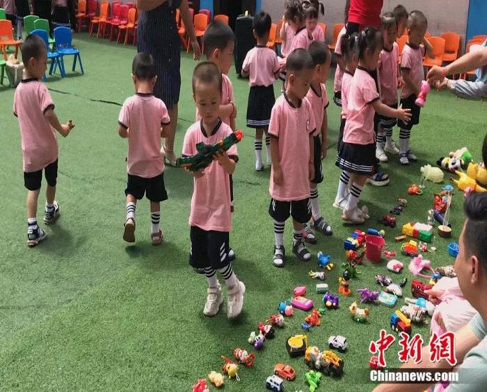 孩子们拿旧玩具换冰淇淋。受访者供图