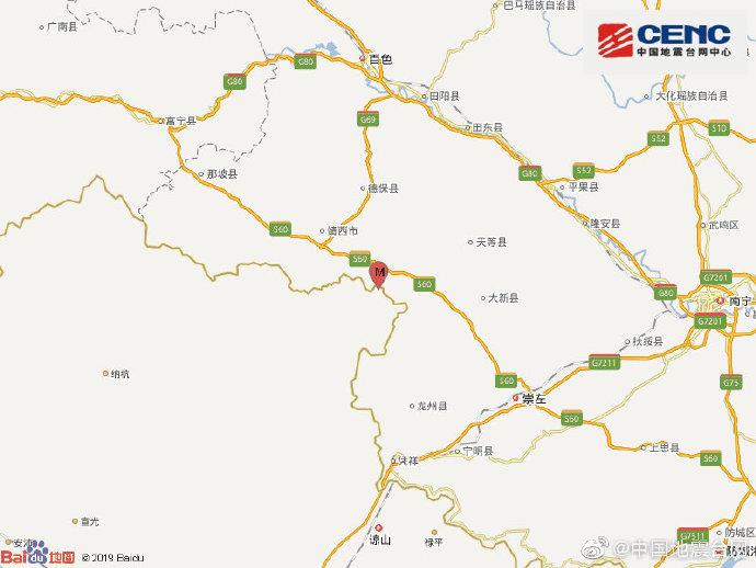 中新网11月25日电 据国家地震台网官方微博消息,中国地震台网正式测定:11月25日11时56分在广西崇左市大新县(北纬22.90度,东经106.70度)发生3.2级地震,震源深度6千米。