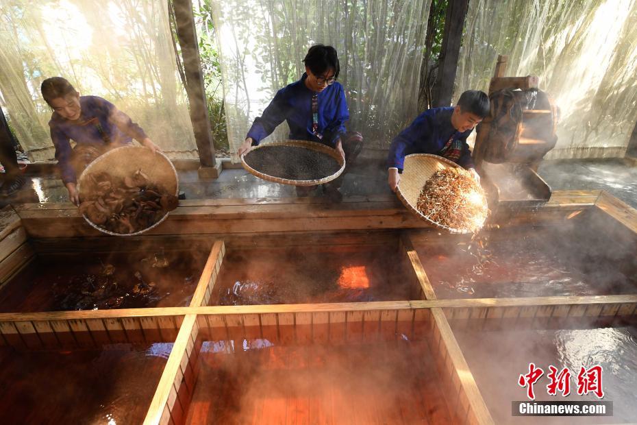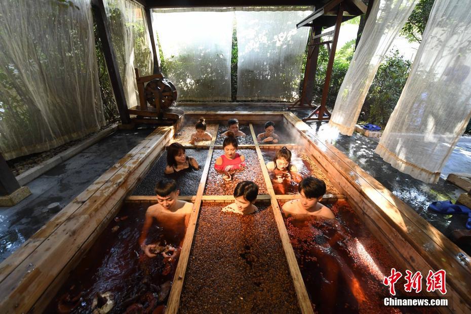 12月8日,杭州气温持续走低,当地云曼温泉打造的九宫格中草药泡池吸引不少民众前来体验。杨飞 摄