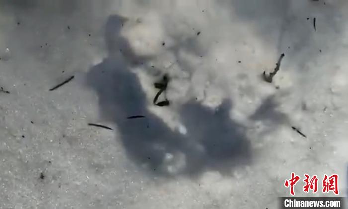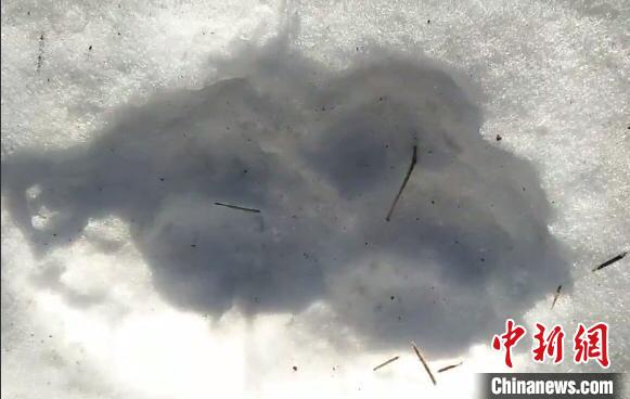 当地林区保部门巡护员赶到尔站三林场后,跟随李万军找到了“虎粪”的采集地点。由于近日的降雪,动物脚印已经被雪覆盖,目前只能看到能看到一个个爪印大小的雪窝,还有老虎掩埋自己粪便时挠出的坑。