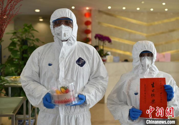 蛋糕和贺卡虽轻,虽隔着防护服和护目镜,但在这个特殊的春节假期里,小小一份生日惊喜仍带去了南京人对疫区同胞的温暖和支持。