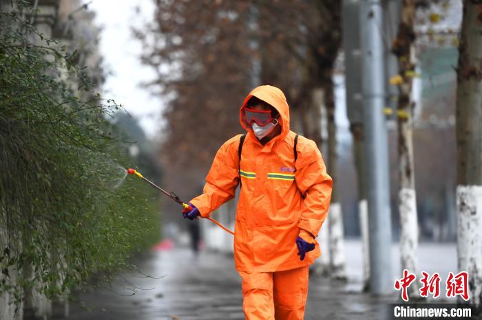 图为社区环卫正在进行消毒工作。 陈超 摄